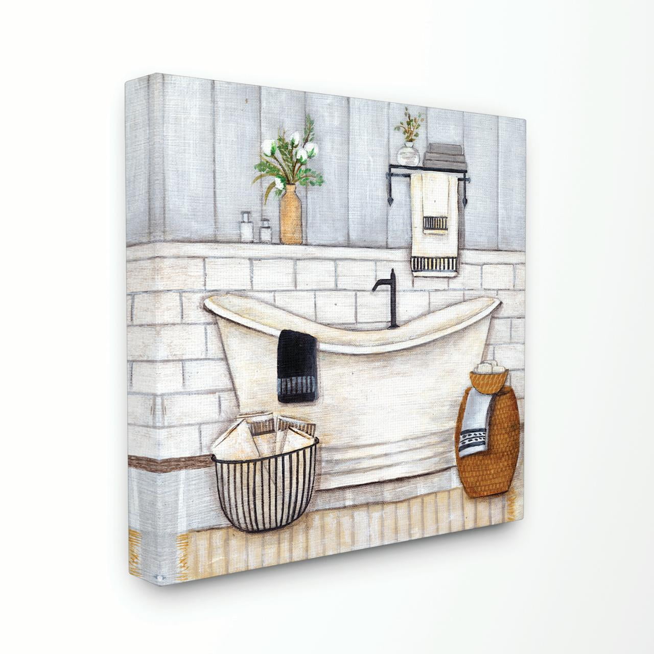 Pull it all together with the lincoln traditional wall mirror, phalaenopsis orchids floral arrangement in vase. Her interests include art and real estate investments. Cottage shabby chic bath pictures in aqua, black cottage shabby chic bath pictures in aqua, black and teal. Farmhouse bathroom decorated with a lovely floral canvas mounted above the deep soaking tub. Easily organize a bathroom or laundry area with these handmade floating shelves.